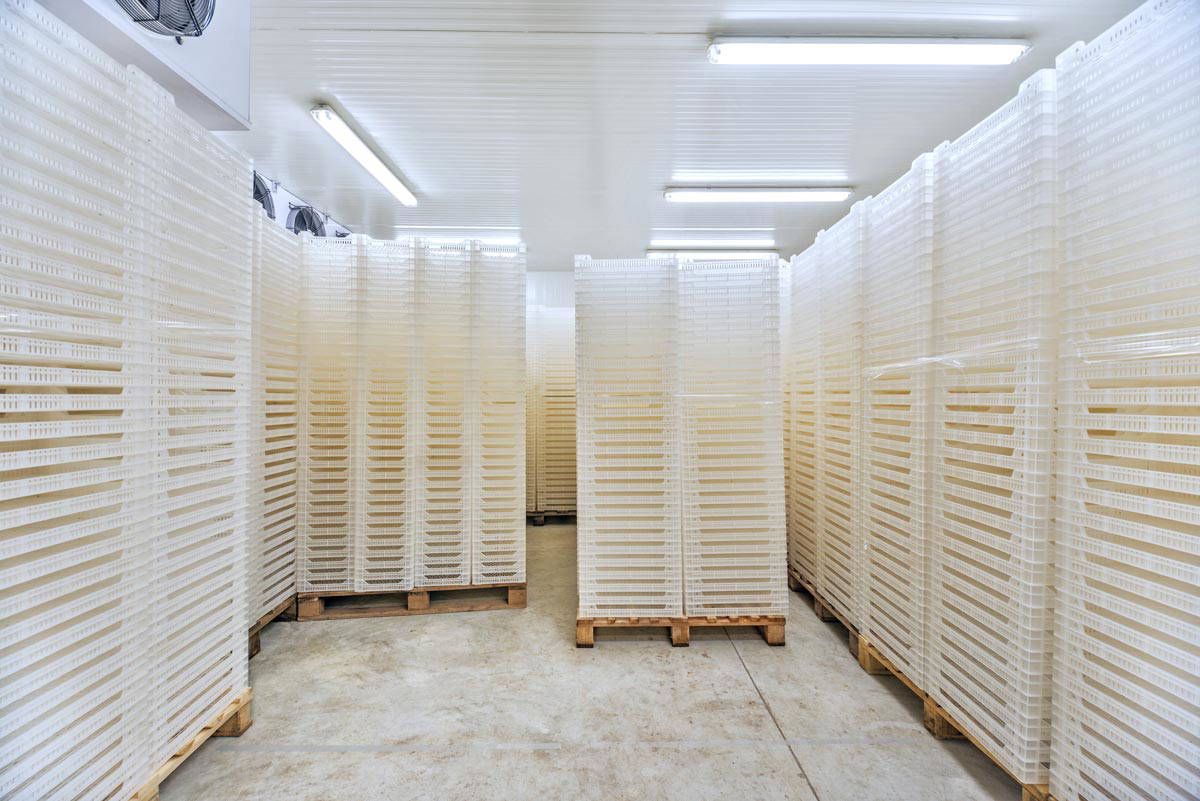 UK COLD Services designed and installed the room which is over 1400m3 and included 2 independent refrigeration systems, automated forklift access door, insulated concrete floor, and a personnel door.